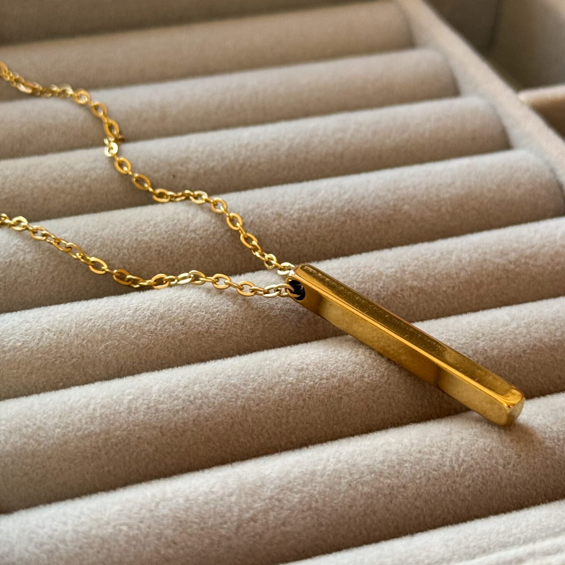 Este collar de barrista en acero dorado quirúrgico es ideal para grabar nombres, fechas, CODIGOS QR o palabras especiales que quieras llevar siempre con vos. Su diseño delicado combina con cualquier look, desde el día a día hasta una ocasión especial.